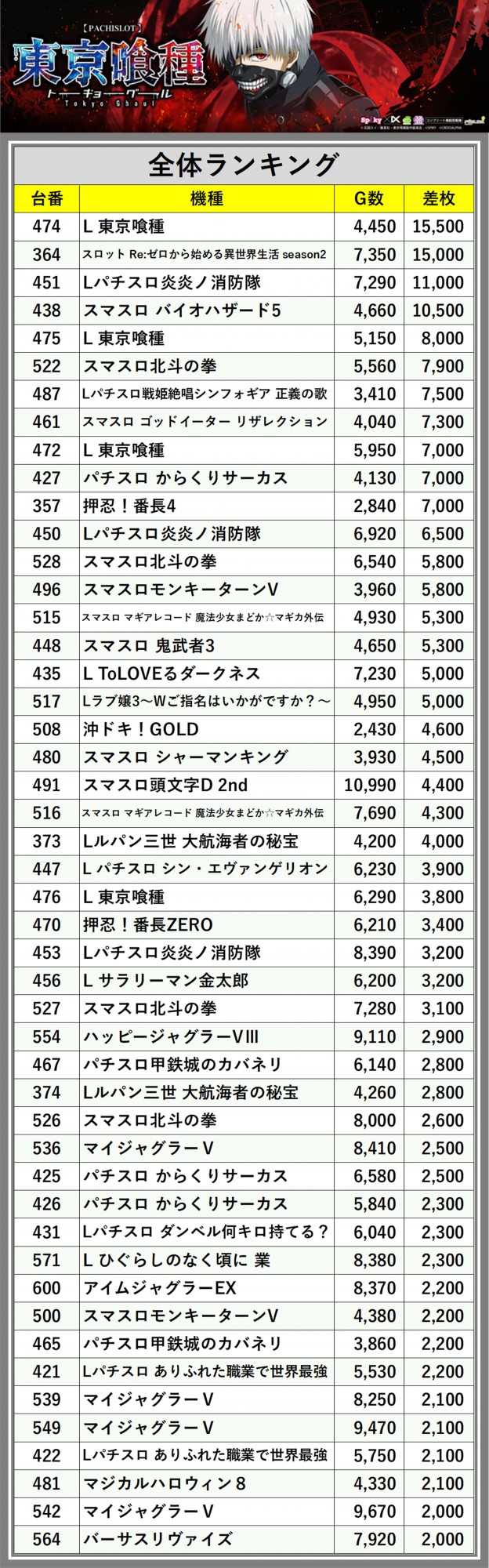 厳選された取材対象機種をはじめ、その他スロット全体から好記録が飛び出した!プレイヤーが楽しんだ1日を下記データにて振り返ってみて欲しい。