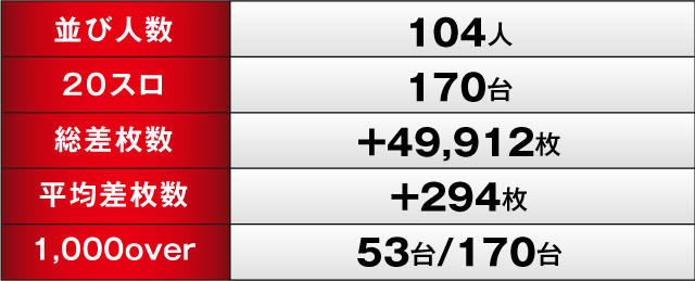 総差枚数+49,912枚、+1,000枚オーバー53/170台という結果となった初戦の「ヒーローズレポート」。総差枚も申し分のない結果ではあったが、注目して欲しいのは+1,000枚オーバー台の多さだ。170台という小規模ながら、全体の30%以上が+1,000枚超えと素晴らしい結果を残してくれた。今後の活躍も十分見込めるホールなので、まだ遊びに行ったことのない人は是非一度足を運んでみてほしい!