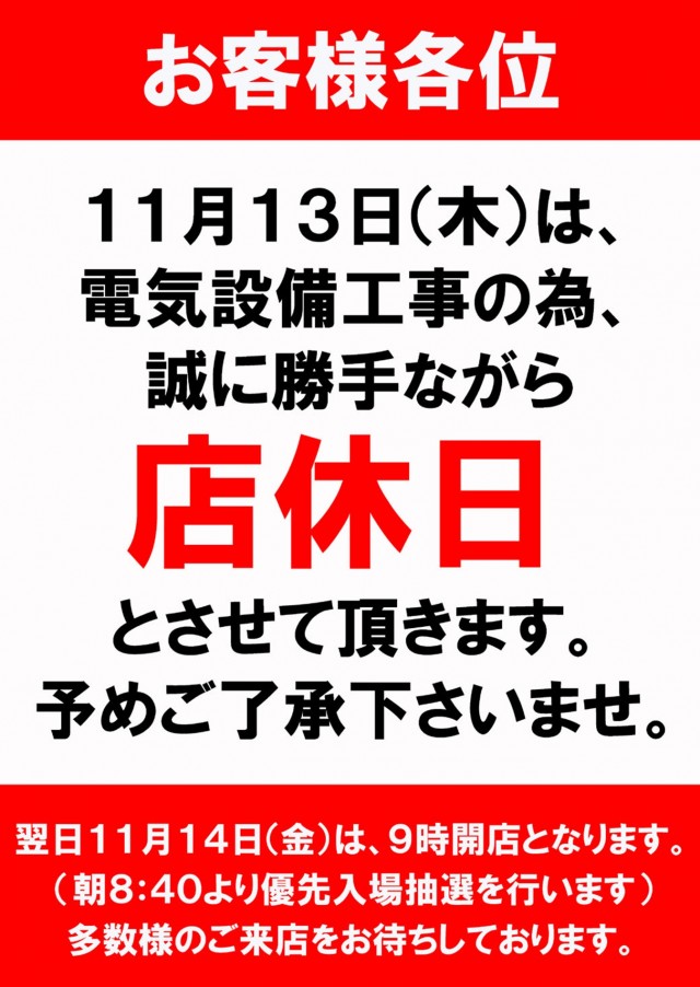 明日 最新台登場!!9:00オープン🌞🌞🌞