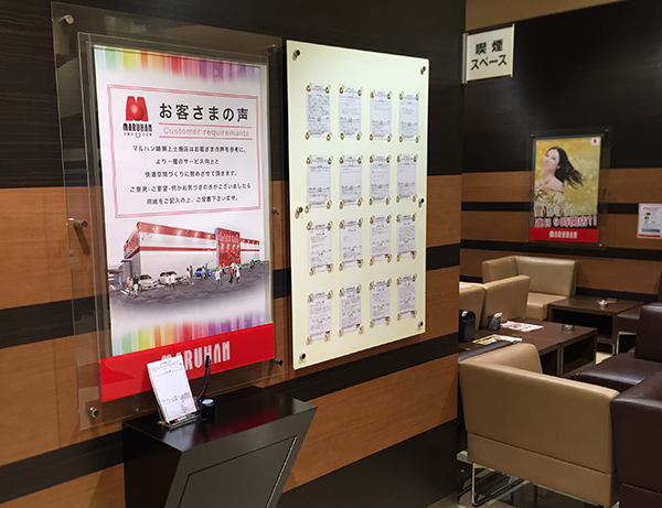 店内には、レストスペースとは別に、サービス向上のための意見を投稿できるコーナーが設置されている。プレイヤー同士で談笑もできる快適かつ楽しい環境作りを意識していることがうかがえた。