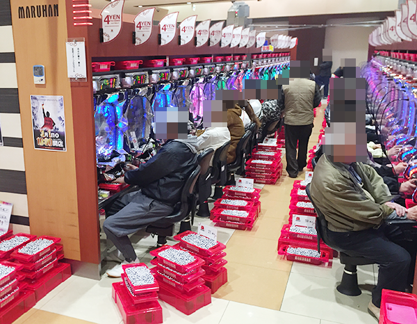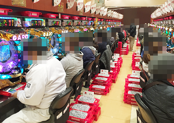 朝イチから満席状態をキープしていた4円パチンコの「CR牙狼 魔戒ノ花」や「ぱちんこCR北斗の拳6 拳王」、「CR真・花の慶次」といった定番のMAXタイプは午後になってもにぎやか。