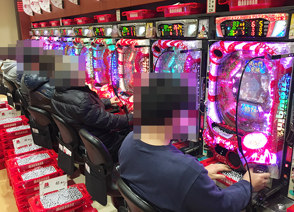 遊技をしているプレイヤーの喜びの表情をあちこちでみることができた「マルハン綾瀬上土棚店」。