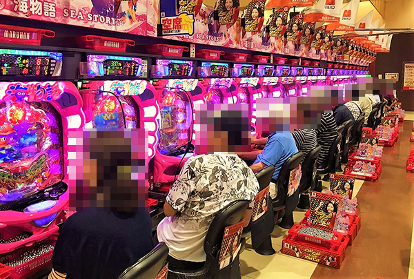 海物語シリーズを筆頭に、1円パチンコも活気のある雰囲気。