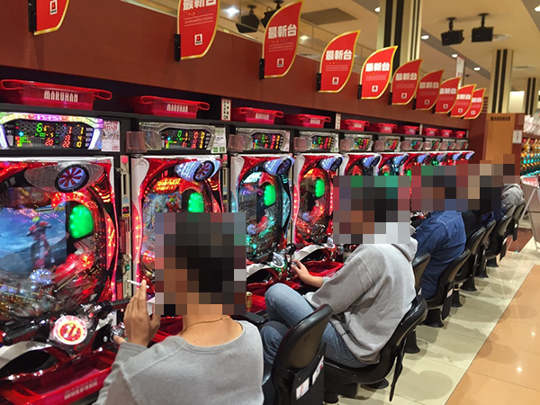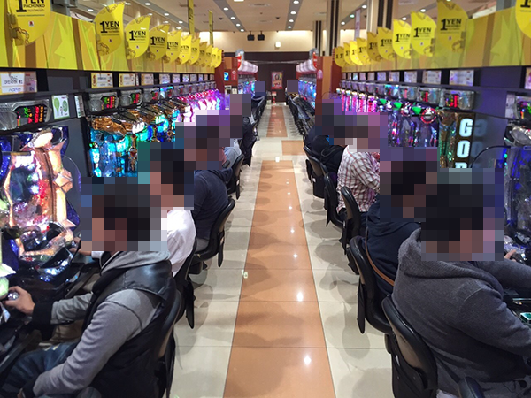 朝イチは、4円パチンコの「CRぱちんこ仮面ライダー フルスロットル」などの新台が人気で、次々と席が埋まっていった。