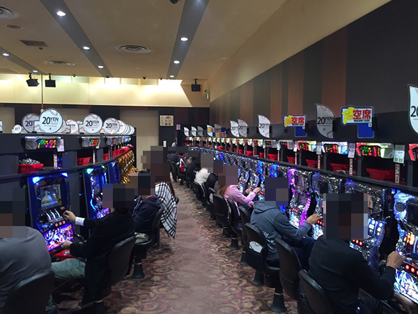 4円パチンコは、朝と同様に「CR牙狼 魔戒ノ花」といった新台に大勢のプレイヤーが集中。空席を探すのも難しいほど盛況であった。