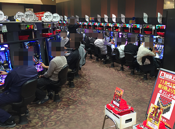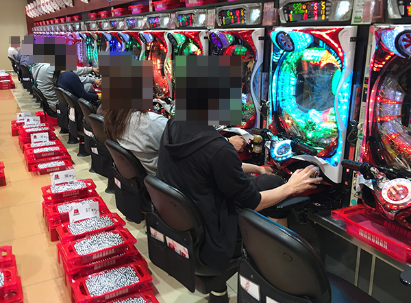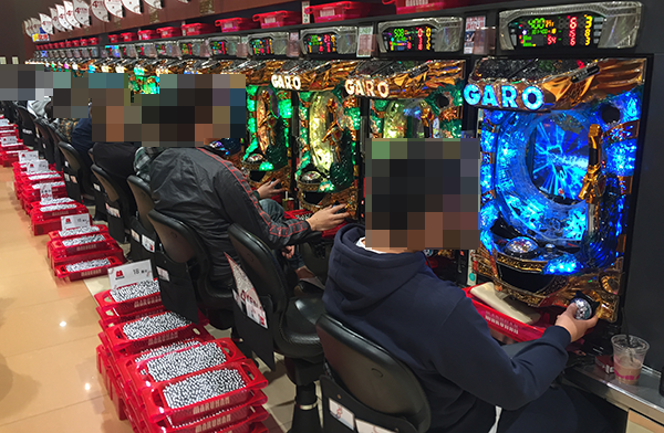14時を過ぎる頃の4円パチンコをみると、朝から人気だった「CR牙狼 魔戒ノ花」や「CRぱちんこ仮面ライダー フルスロットル」といったMAXタイプに、満面の笑みを浮かべているプレイヤーが多かった。表情をみるかぎりでは、機種の魅力を満喫できていたようだ。
