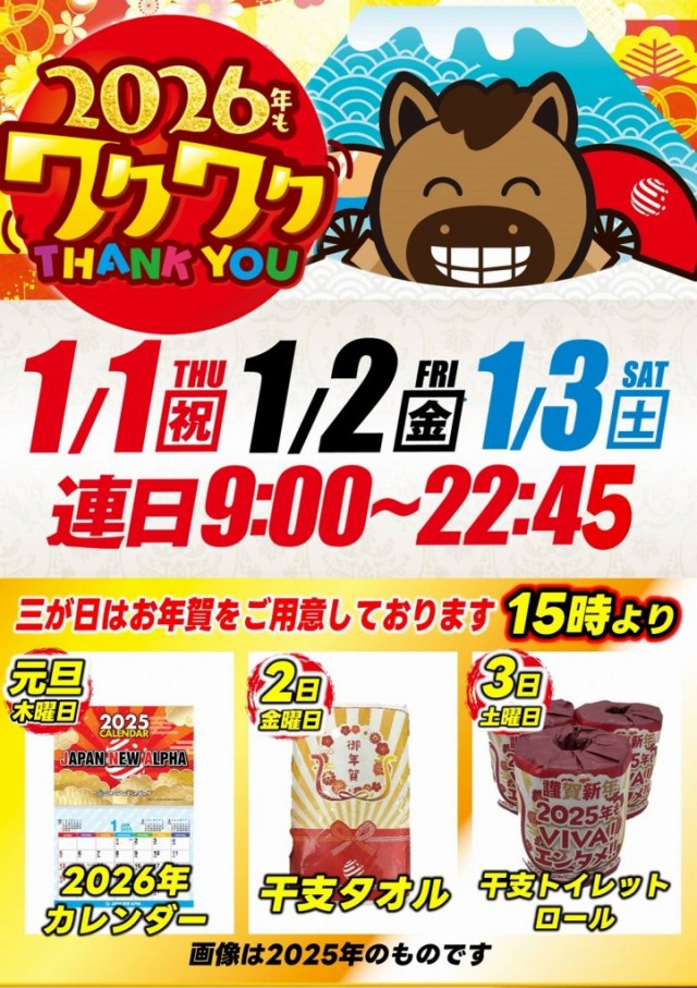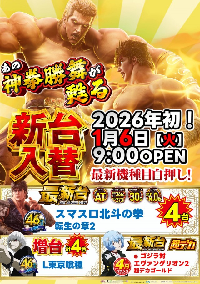 明日1月6日【火】は2026年初の新台入替!!!