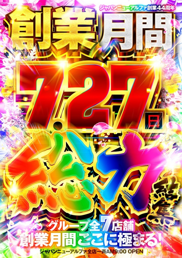 7月27日☆ジャパンニューアルファ☆全店一斉9時OPEN