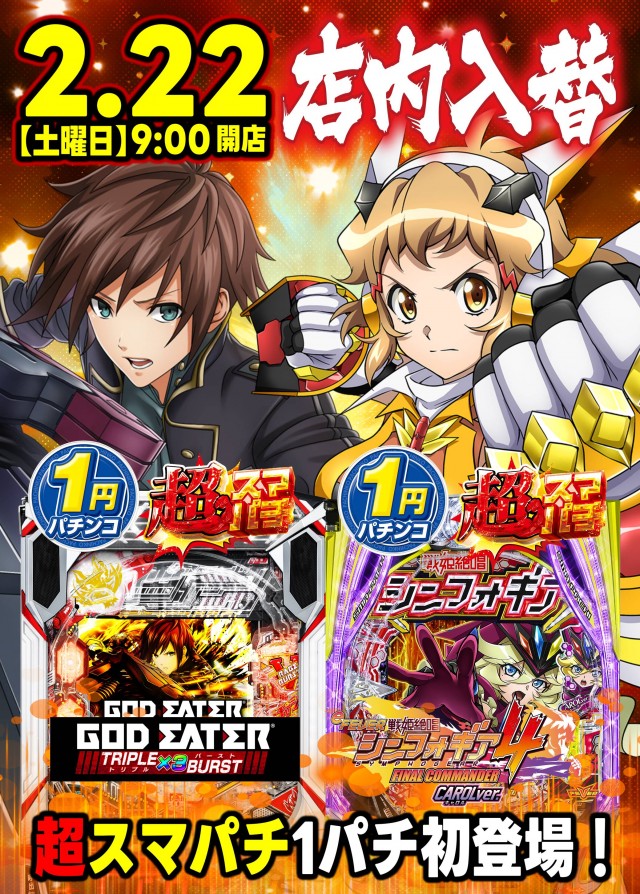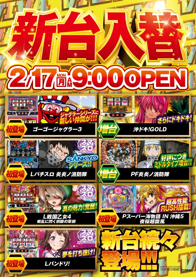 明日☆新台入替☆JNアルファ☆全店一斉9時開店!!