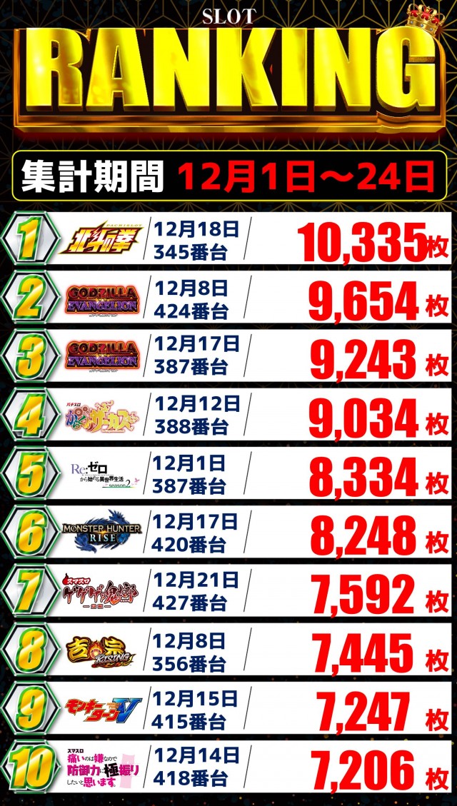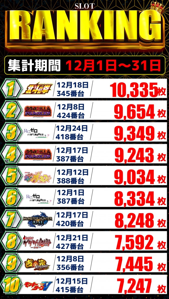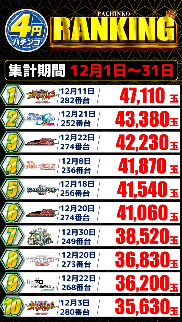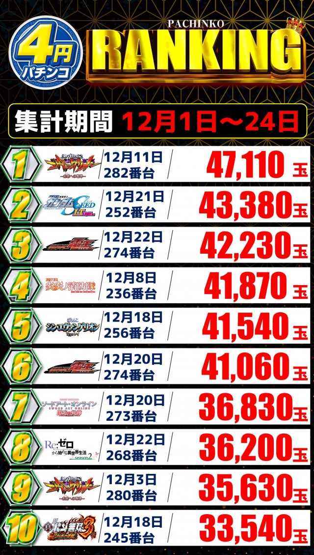 1位 12月27日(土) 2位 12月6日(土) 3位 11月29日(土)