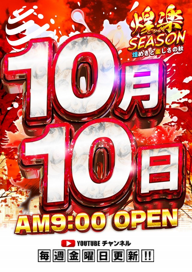 明日【10月7日】ジャパンニューアルファ全店9時OPEN