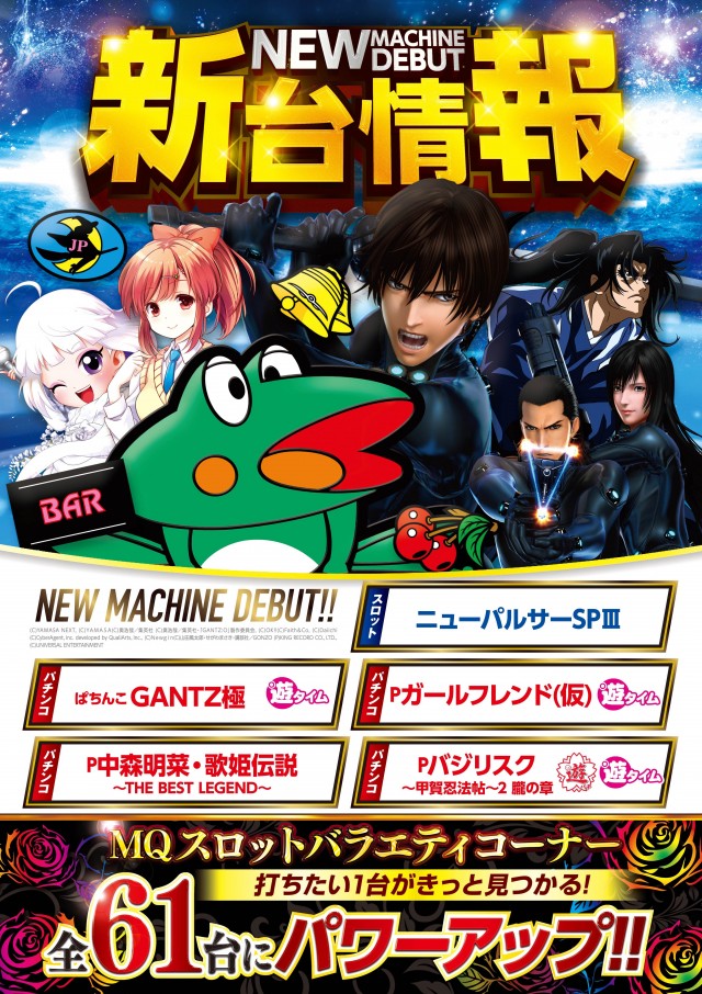 スロットバラエティーが61台に大充実!!新台も続々登場!!!