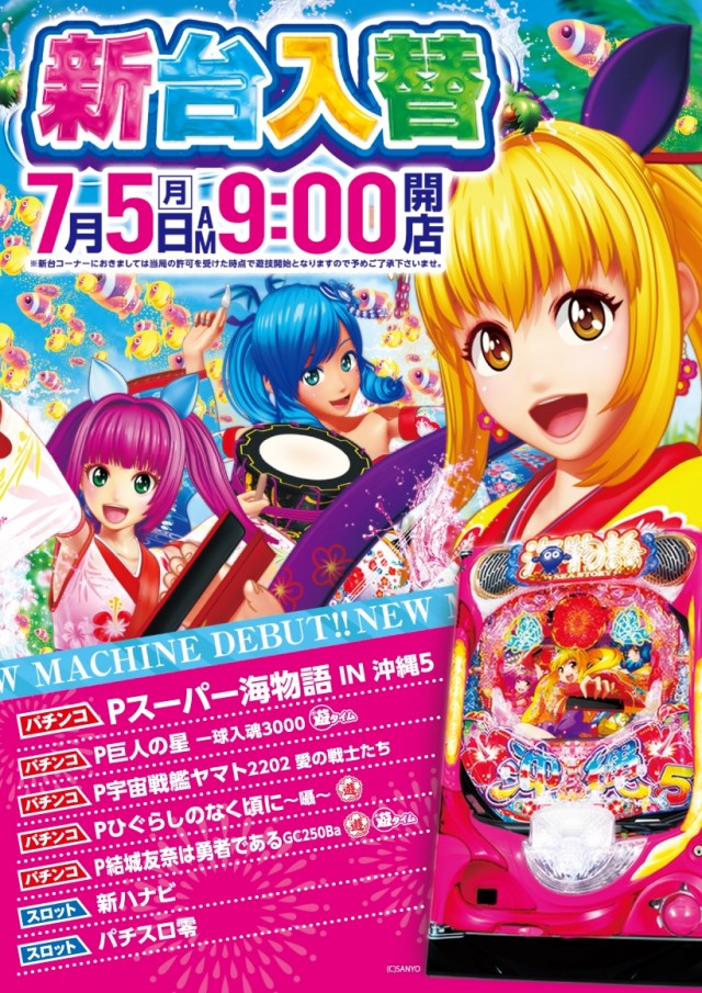 海物語沖縄5・スロット新ハナビ導入!準新台牙狼も稼動中!