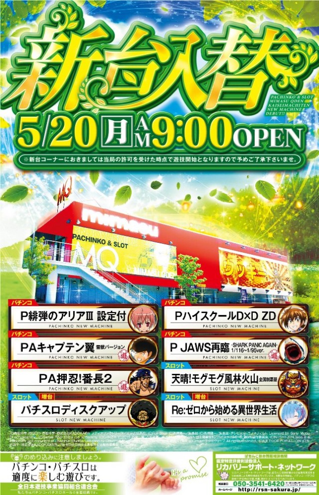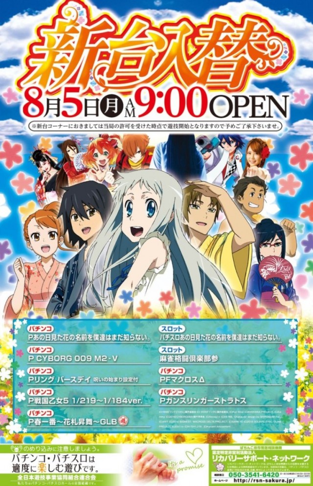 リングバースデイ・パチンコスロットあの花他⑨機種導入済み!!