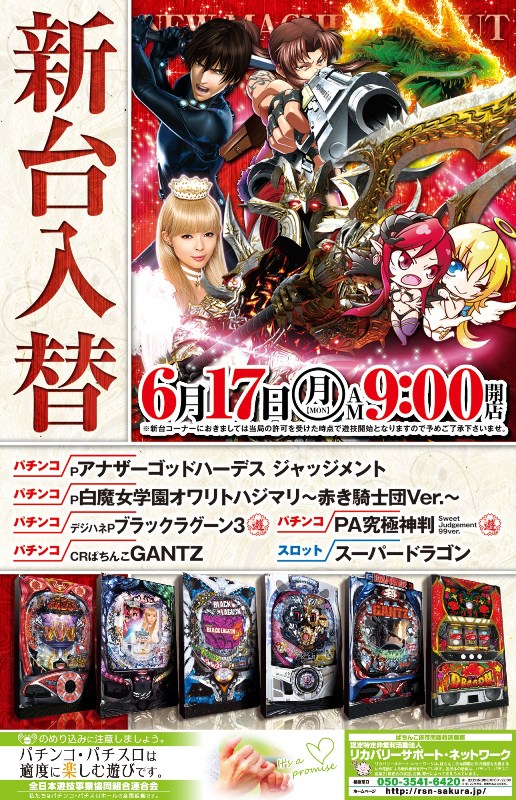 ぱちんこGANTZ・スーパードラゴン他⑥機種導入済み!!