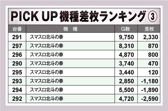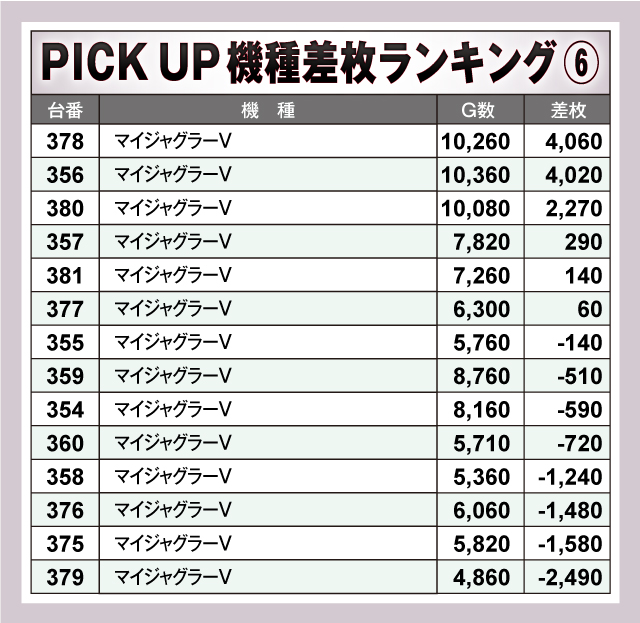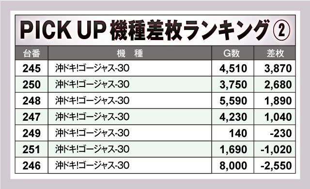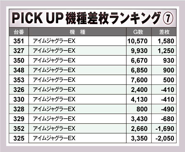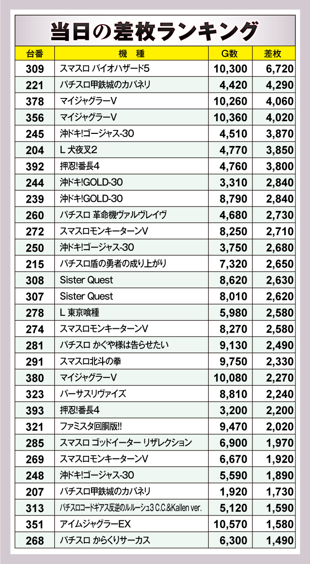 ※差枚数順に掲載しています。