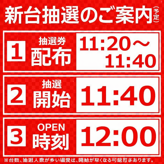 本日12時新台OPEN★11時20分~40分まで抽選券配布!