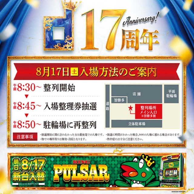 【お客様に大切なお知らせ】★明日の周年抽選入場のご案内★