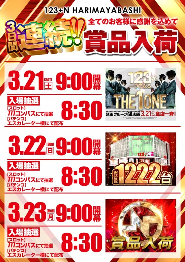 三日間連続賞品入荷 朝9時全館開幕__!!