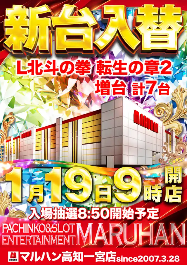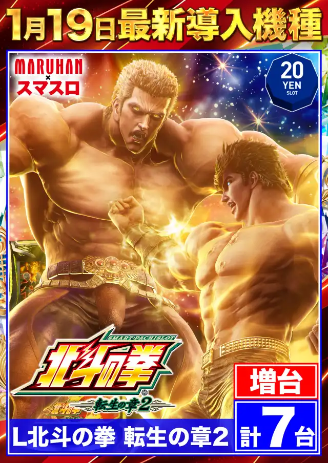 1月19日(月)新台入替! L北斗の拳転生の章2増台計7台!