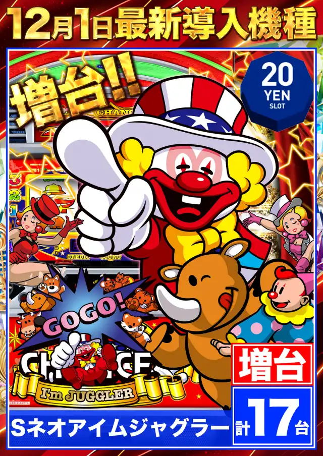 12月1日(月)新台入替&賞品入荷!ネオアイムジャグラー増台
