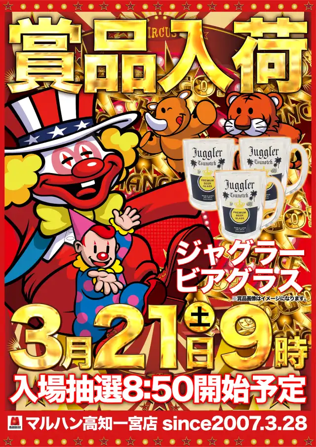 3月21日(土)ジャグラー賞品入荷!ご来店お待ちしております!
