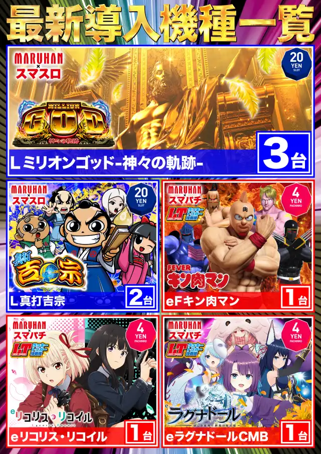 4月20日(月)新台入替!Lミリオンゴッド 3台導入!