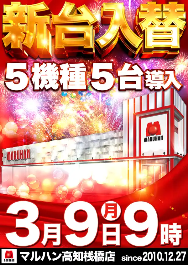 3月9日(月)新台入替5機種5台導入!!