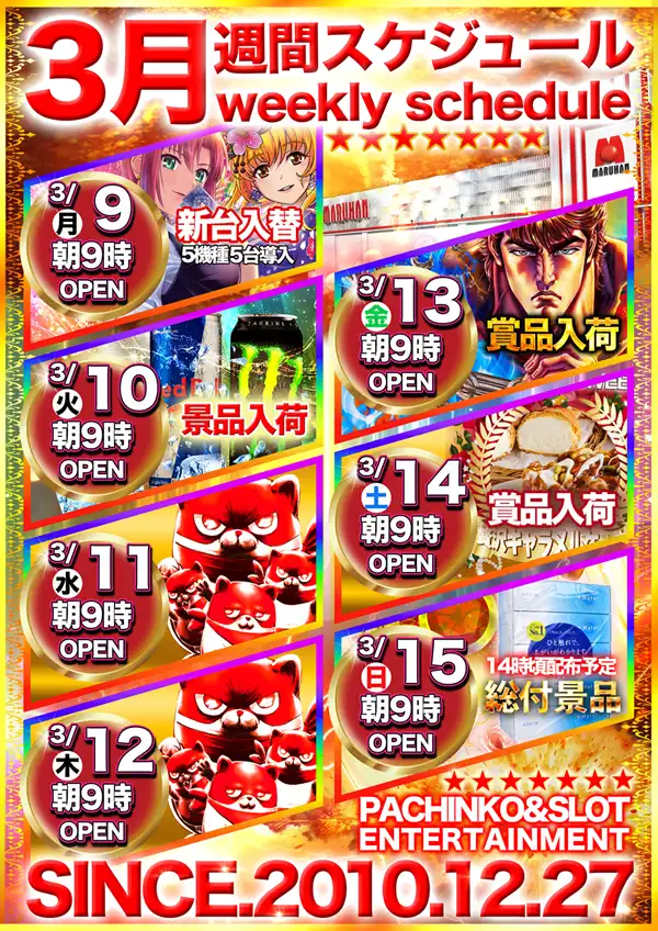 3月2日(月)新台入替3機種9台導入!!
