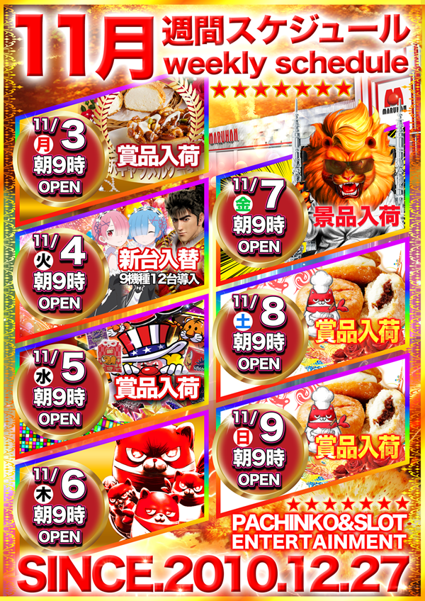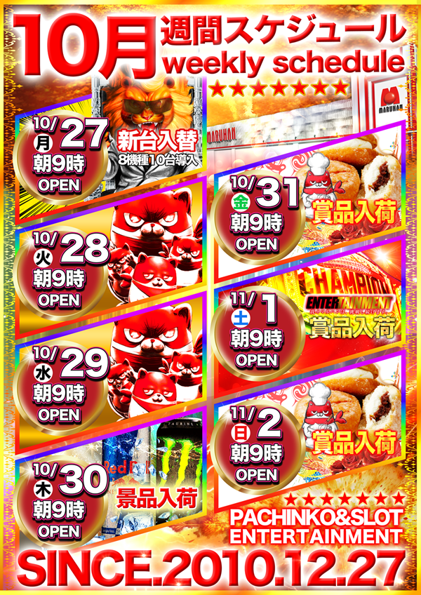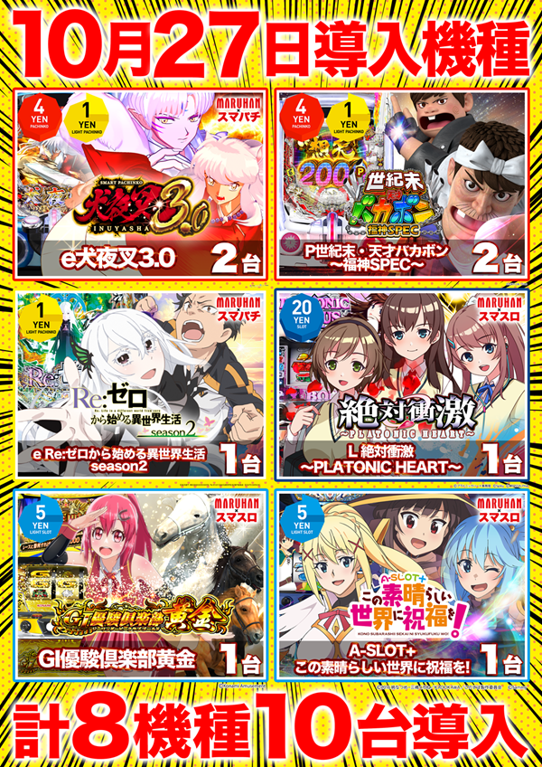 10月27日(月)新台入替&店長ブログ&来店ポイント景品入荷