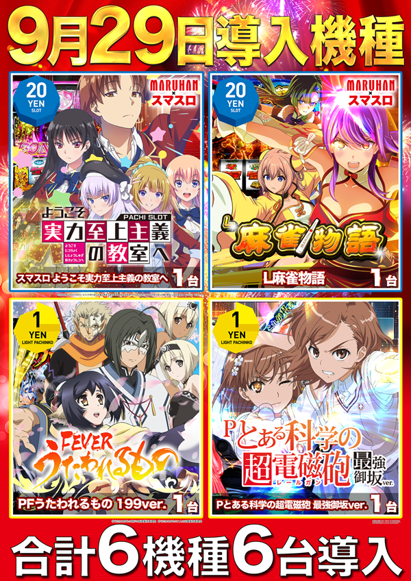 9月29日(月)新台入替6機種6台導入!
