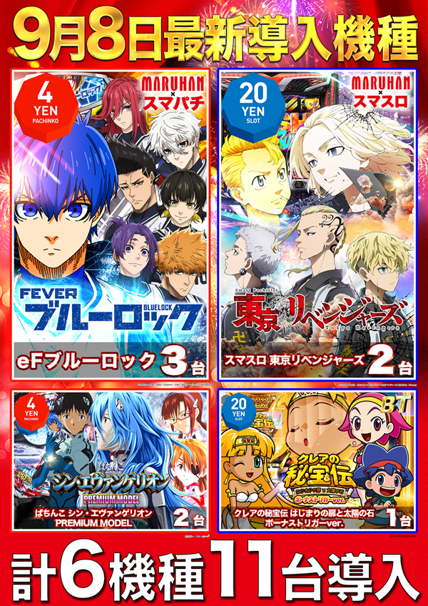 9月8日(月)大型新台入替6機種11台導入!