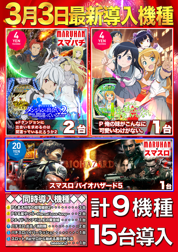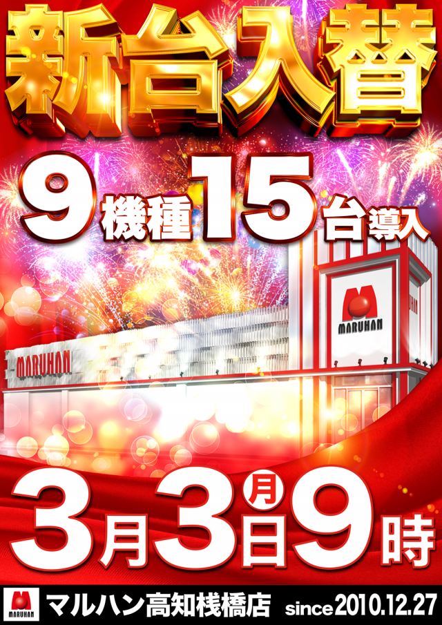 【マルハン高知桟橋店】1月20日(月)新台入替7機種9台導入