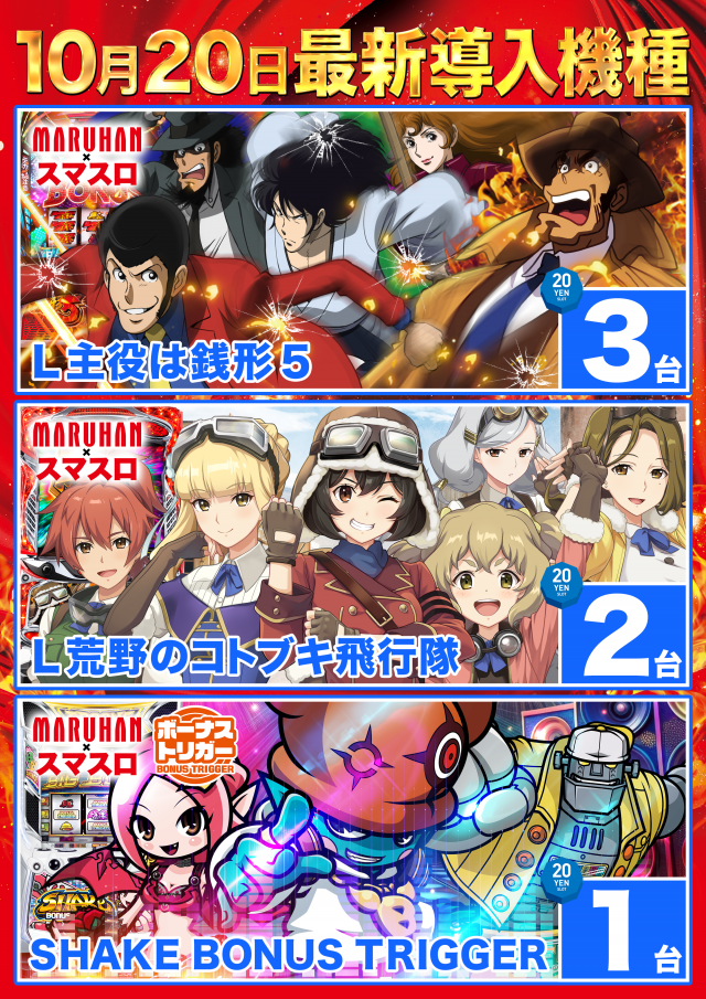 10月20日(月)🔥新台入替🔥3機種6台導入❗❗
