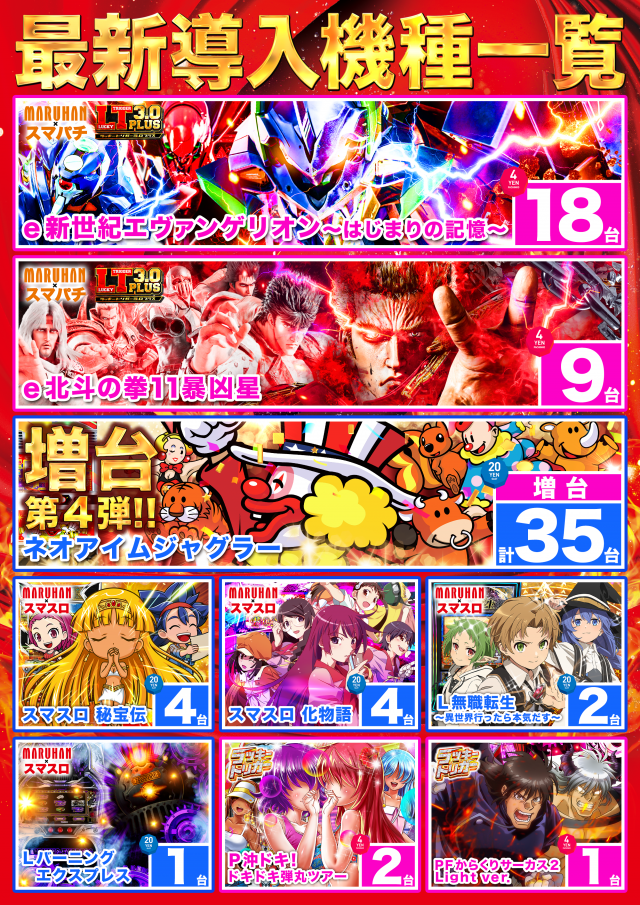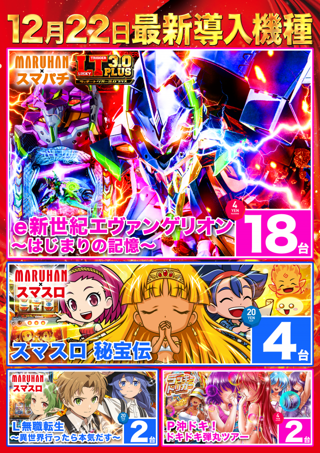 12月22日(月)🔥新台入替🔥5機種31台導入❗