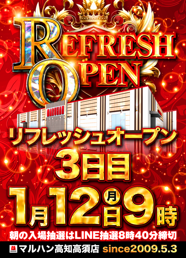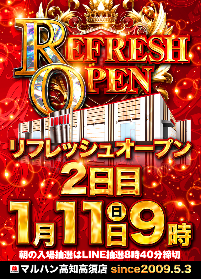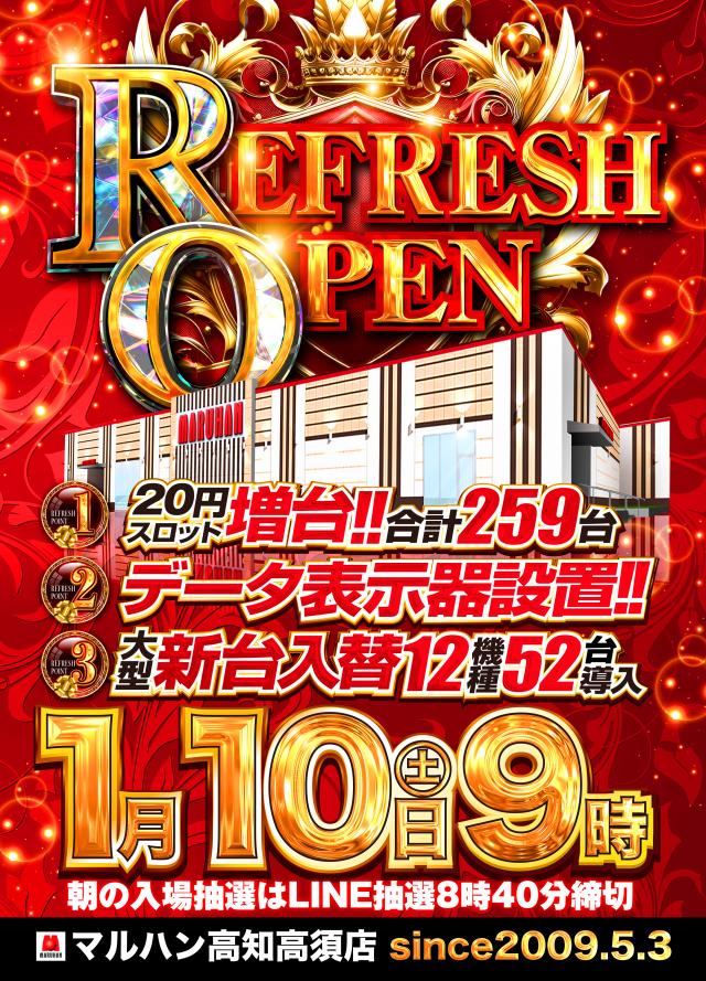 1月10日(土)🔥リフレッシュオープン🔥20円スロット増台🔥