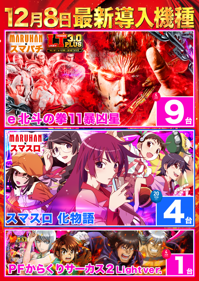 12月8日(月)🔥新台入替🔥3機種14台導入❗