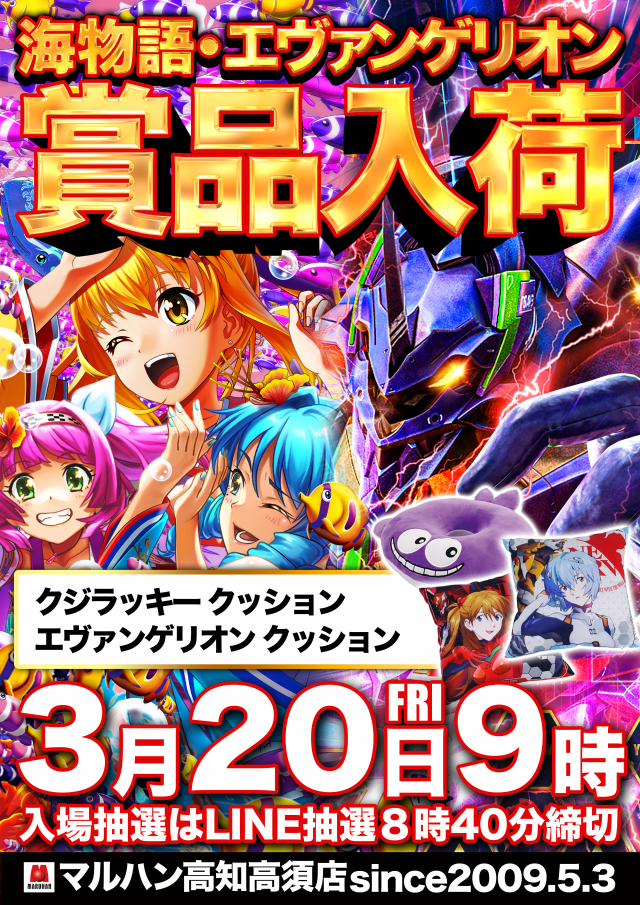 3月20日(金)⚡賞品入荷⚡海物語・エヴァンゲリオン⚡