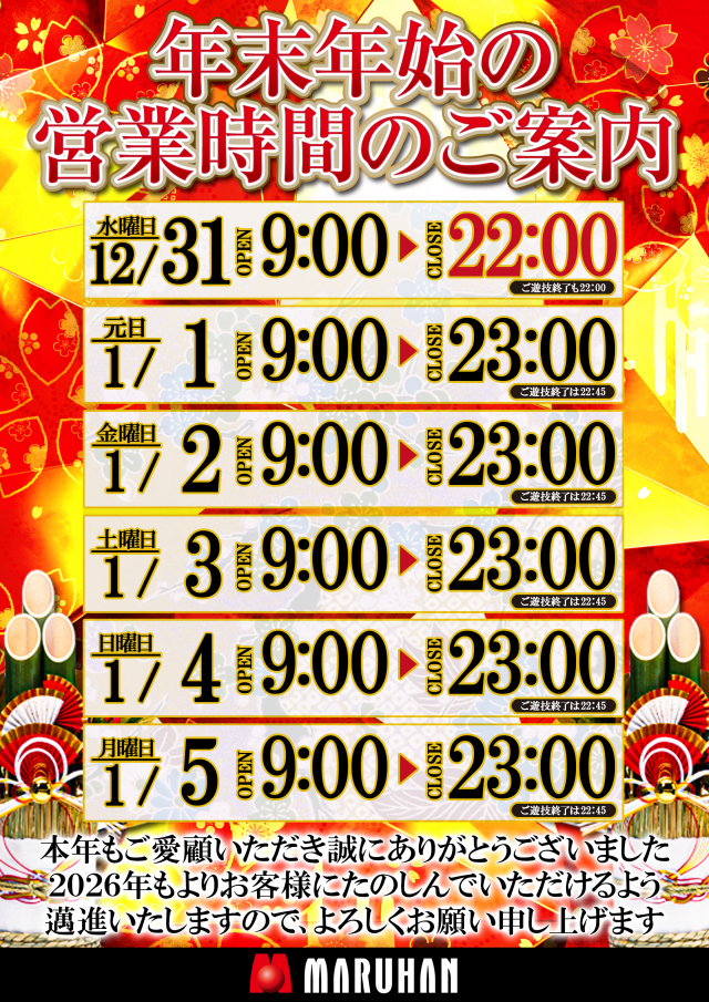 ✨謹賀新年✨1月1日(元日)通常営業❕打ち始めもマルハン🎵