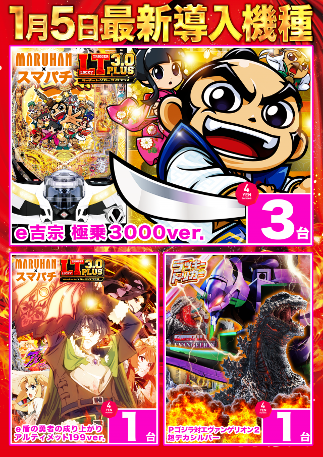 1月5日(月)🔥新台入替🔥4機種7台導入❗