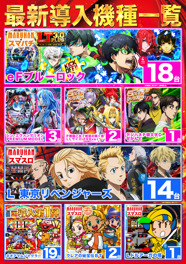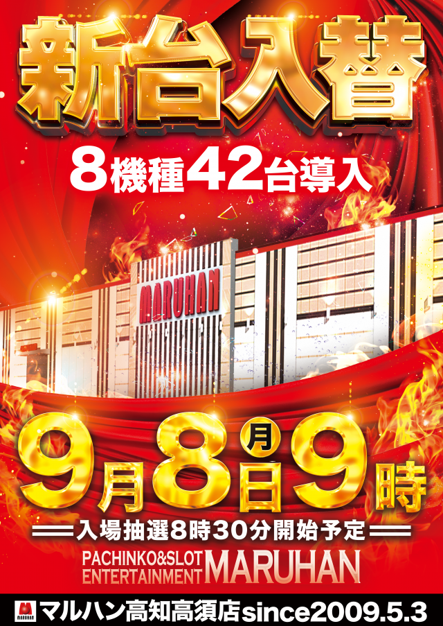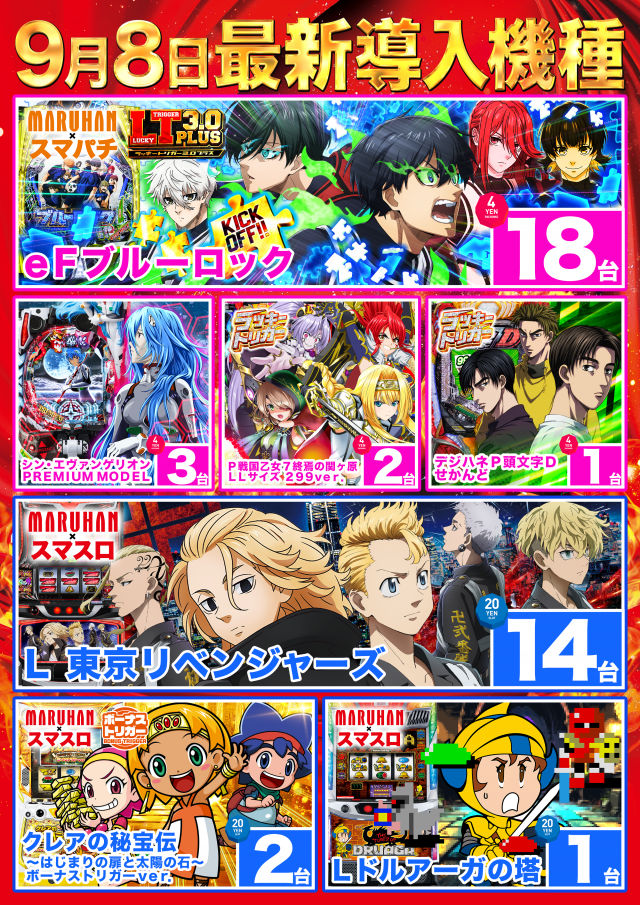 9月8日(月)🔥新台入替🔥8機種42台導入❗朝9時オープン❗