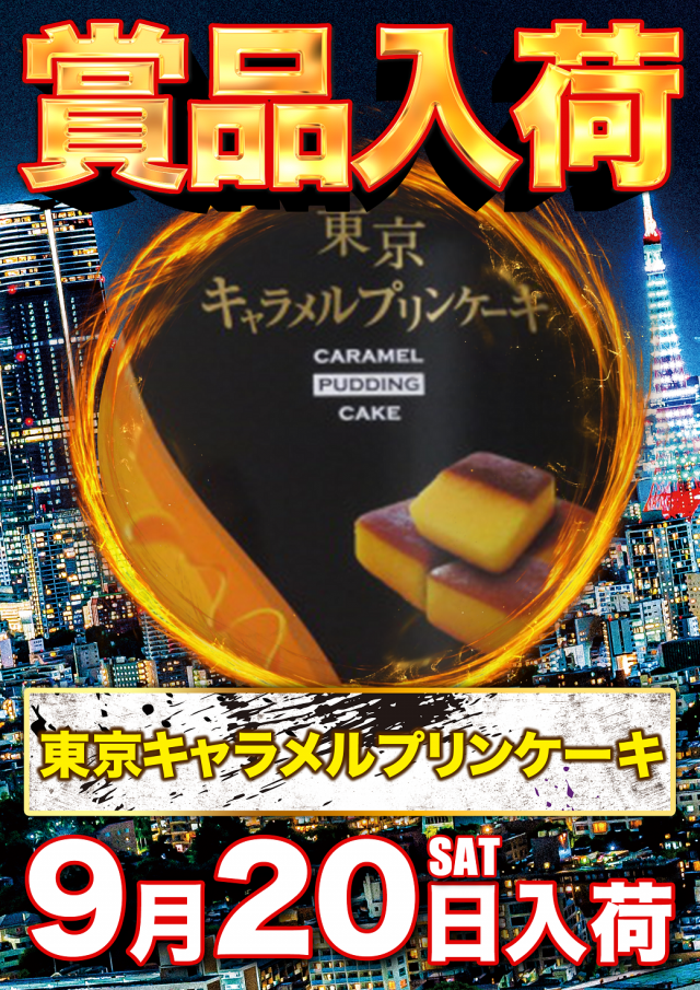 9月20日(土)⚡賞品入荷⚡✨東京キャラメルプリンケーキ✨