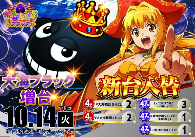 明日10月14日新台入替‼ ぱちんこ大海ブラック増台‼