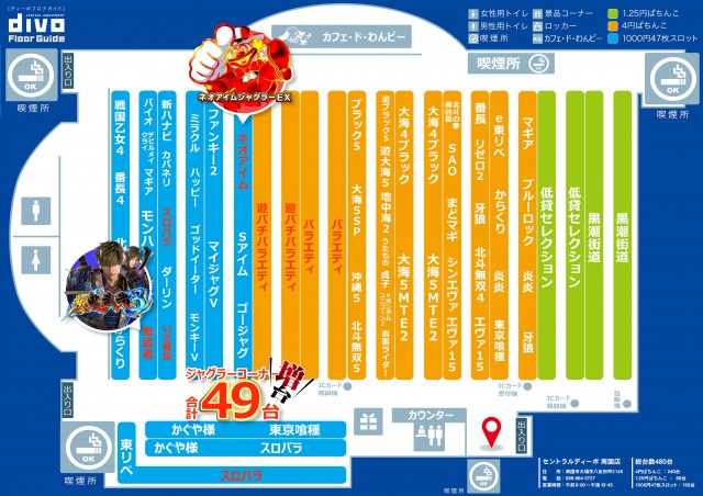 4円240台 1.25円80台 47スロ160台 合計480台設置。