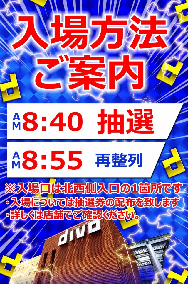 明日5月5日は混雑が予想されるため朝の入場は抽選を実施します
