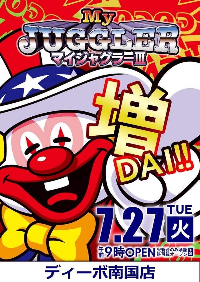 7月27日 マイジャグラーⅢ増台!!合計20台設置♪