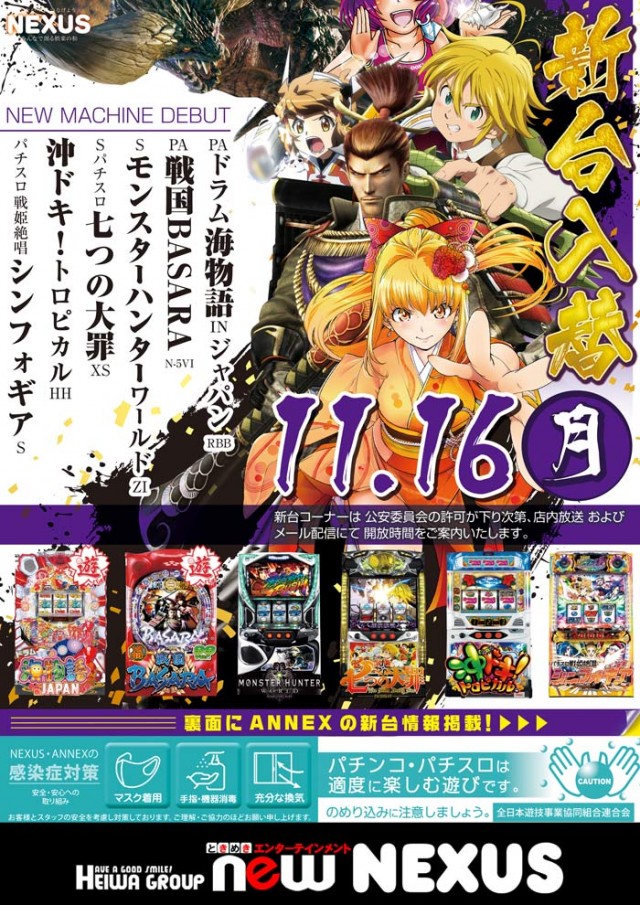 明日16日モンスターハンターワールド他計6機種8台(予定)