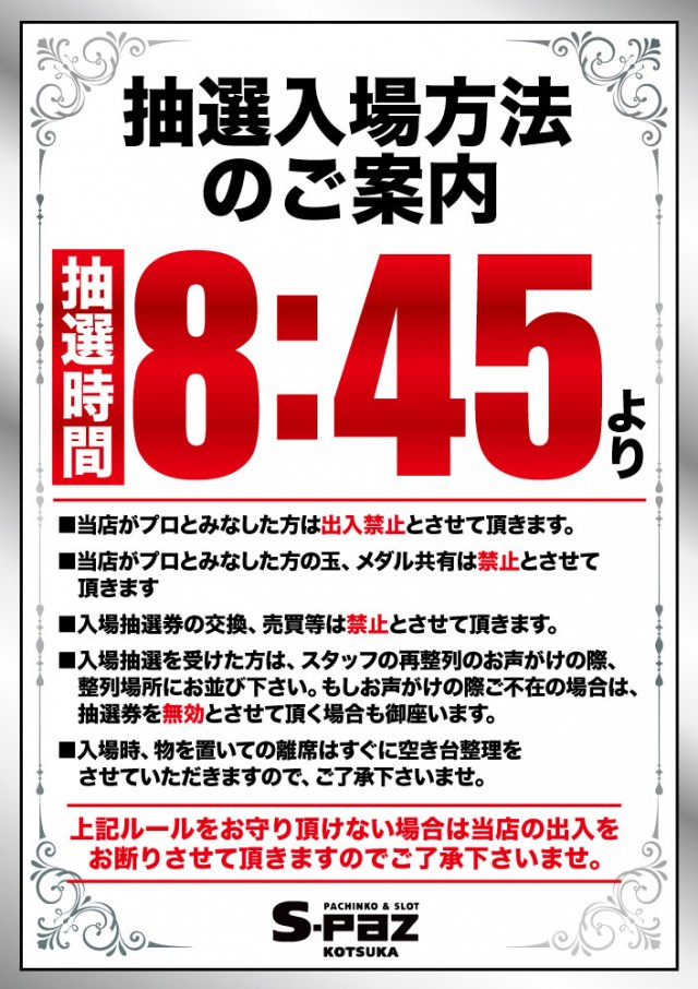 本日20スロレイアウト変更!8:45より抽選開始🌈