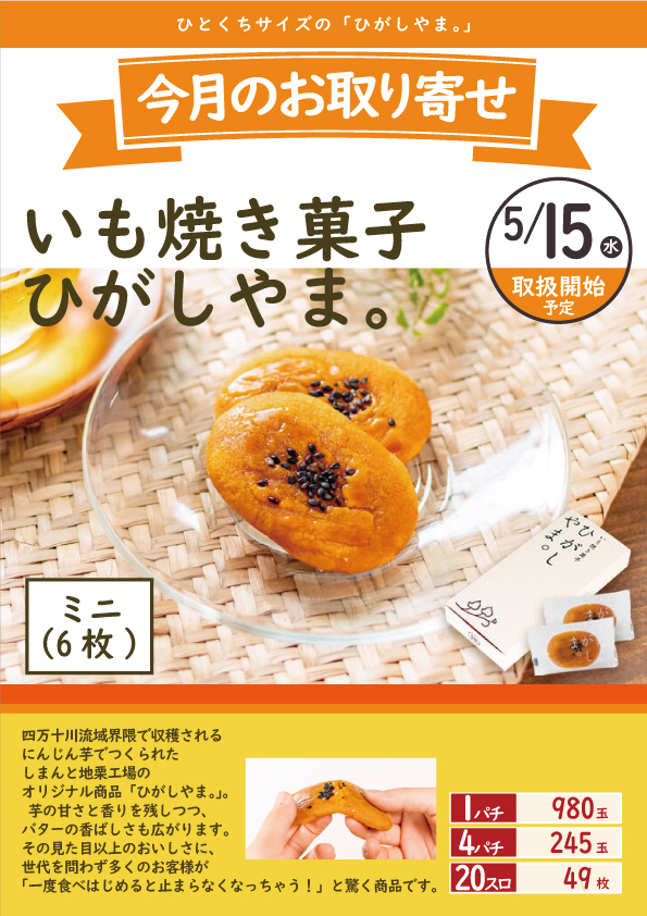 5/15(水)『いも焼き菓子 ひがしやま』入荷!!