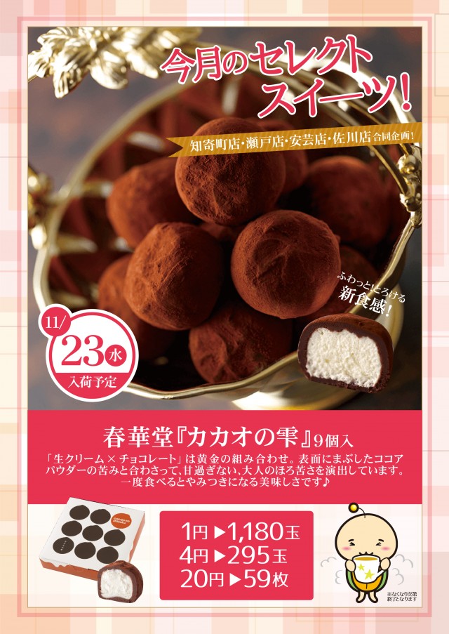 11/23(水)本日、スイーツ『カカオの雫』入荷致しました。